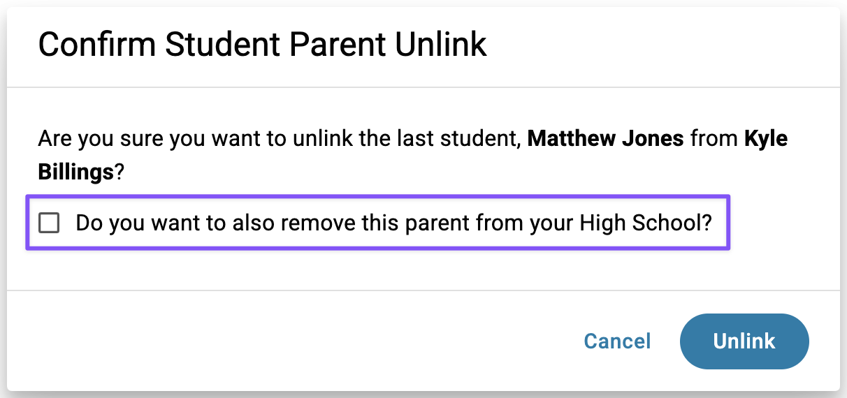 - Leave it unchecked if you only want to unlink them from the student.