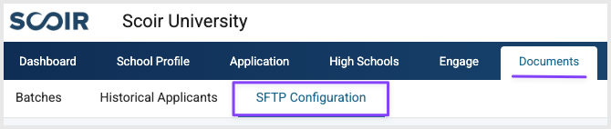 To get started, go to the Documents tab in your Scoir account, then click on the SFTP Configuration tab.
