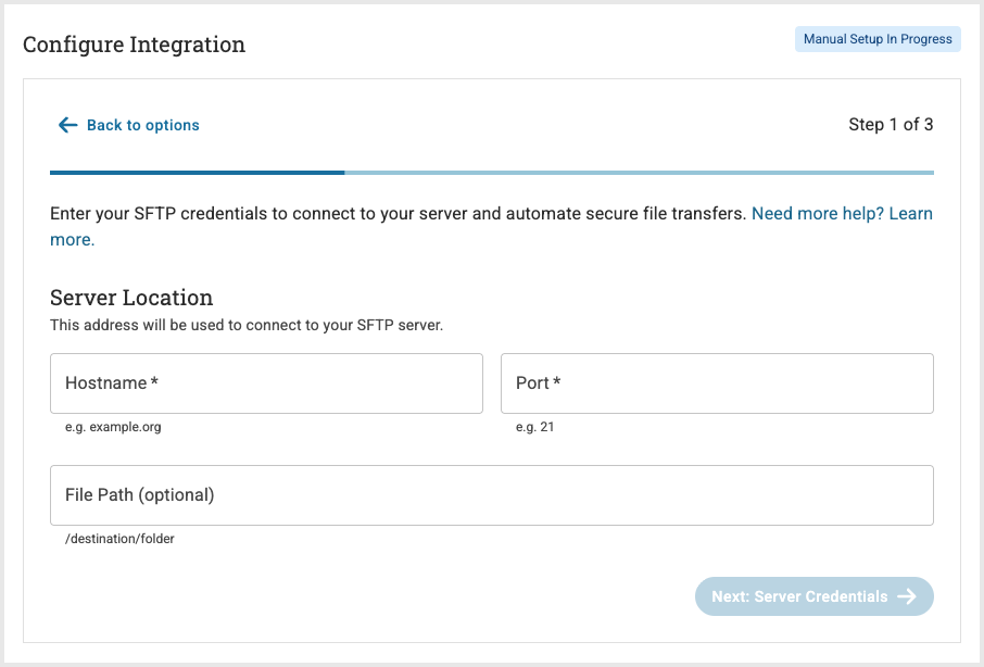 Begin the three-step process to initiate your SFTP Integration with Scoir: