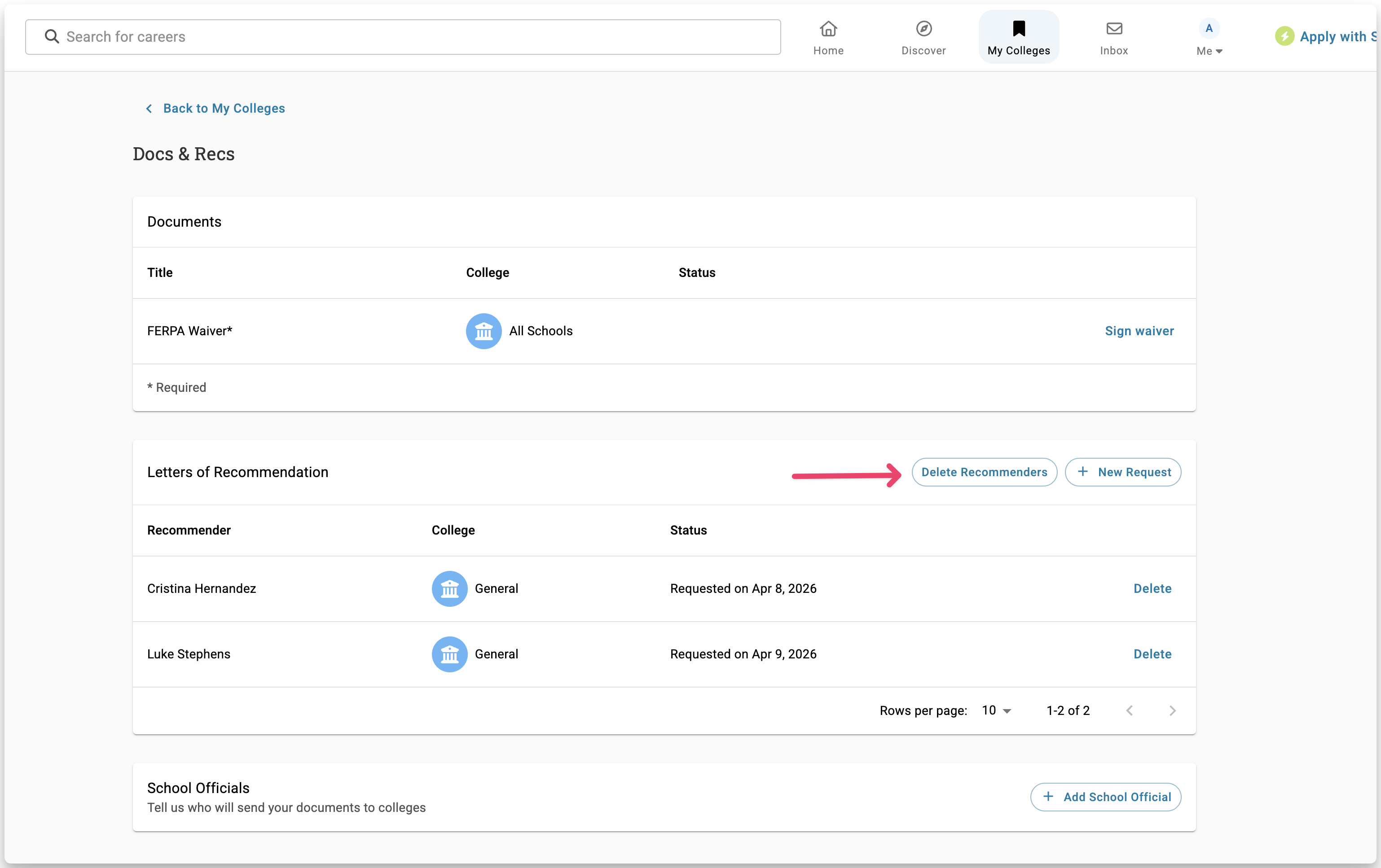 - If the email address is incorrect, delete and re-add your recommender. Go to your Docs & Recs page, delete your recommender, and create a new request to add them again using the correct email address. This will send them a new email with a fresh link.
