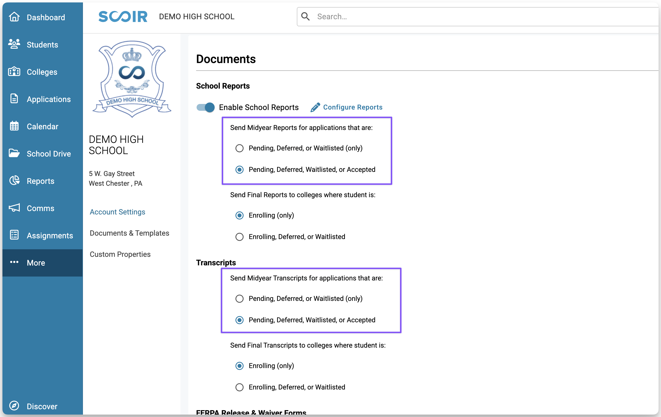 - From your Scoir account, go to More > School Settings