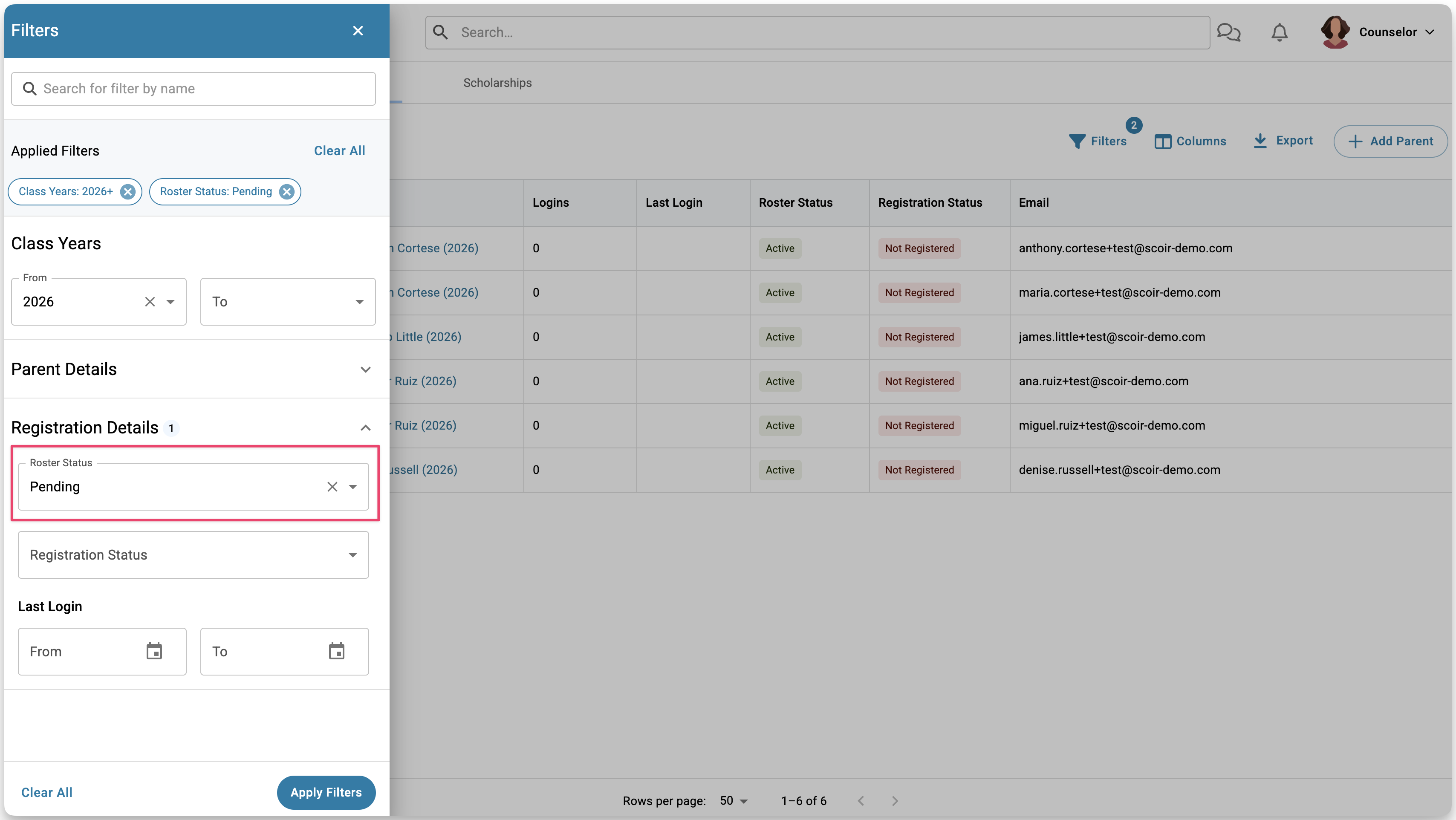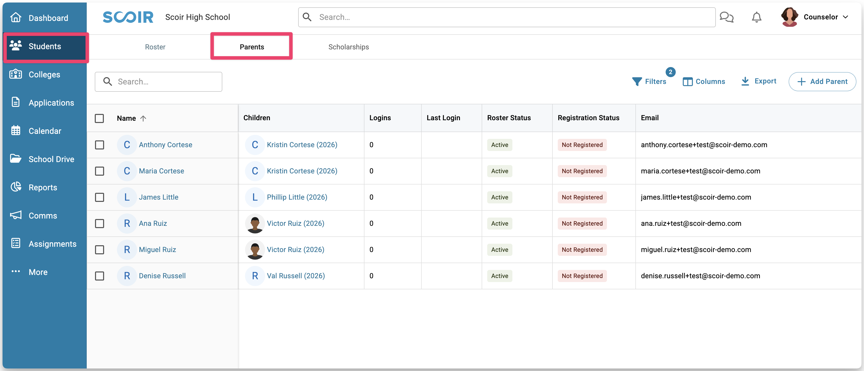 For Counselors: Using the Parent Roster