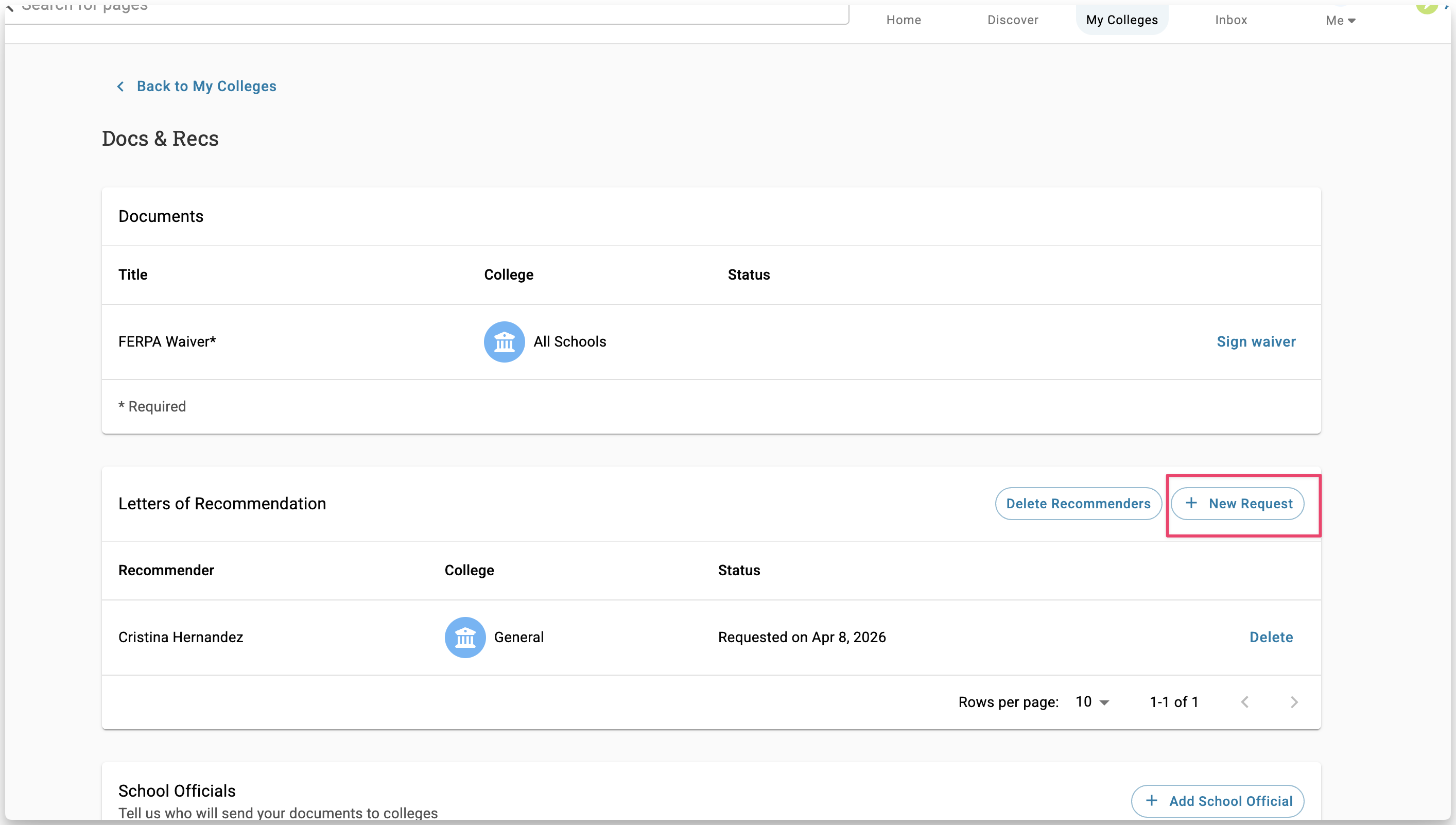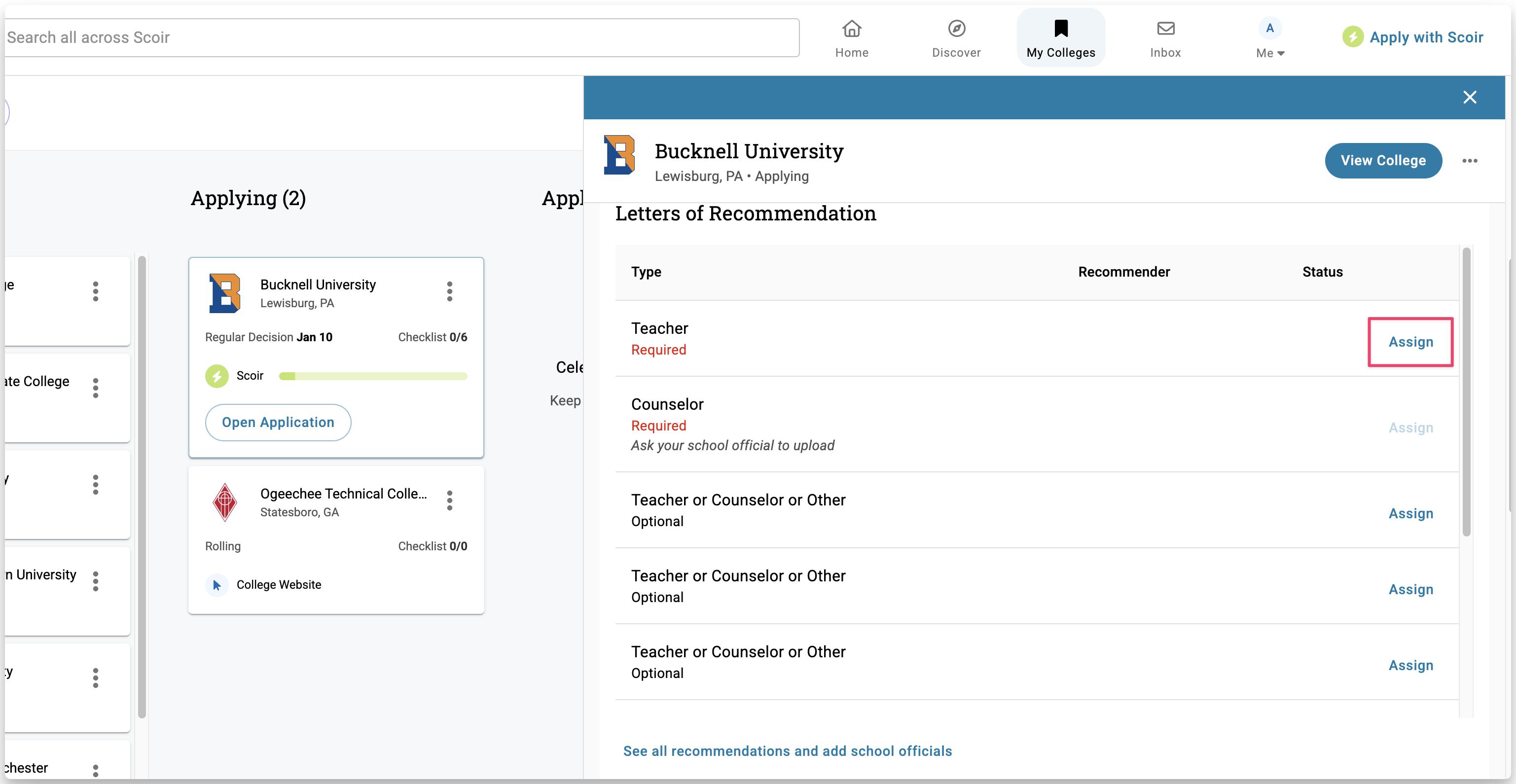 - Once the request is sent, go back to My Colleges and open the college you’re applying to. In the Letters of Recommendation section, click Assign to select and assign the request.You can assign the request before your recommender uploads their letter.
