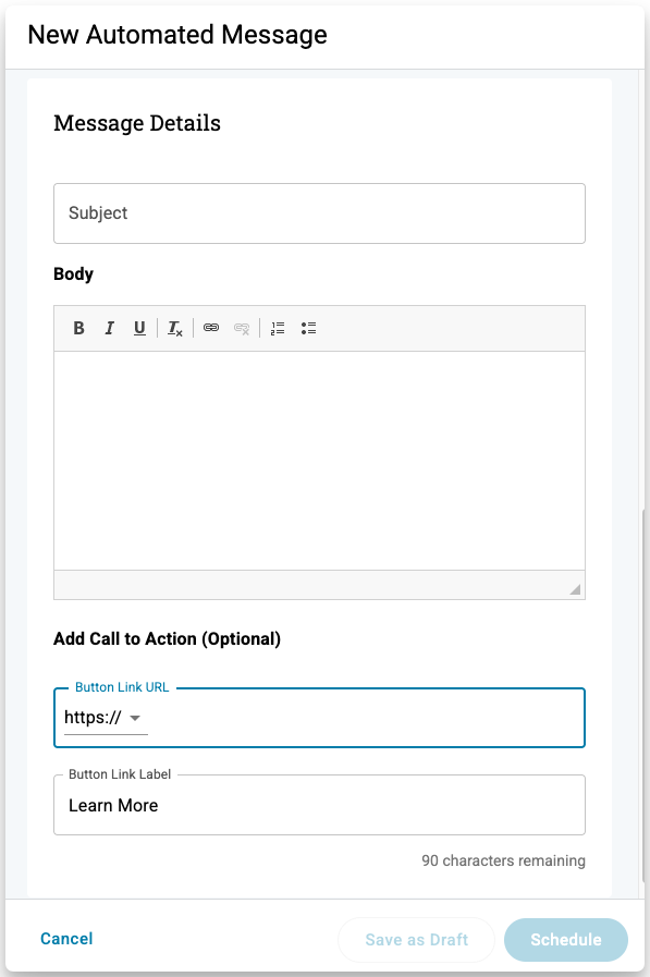 - When your message is ready, click Schedule to activate it or Save as Draft to edit later.