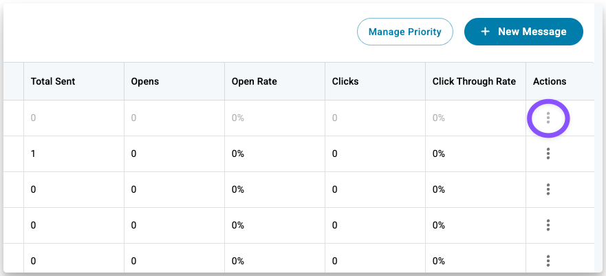 - Copy - Duplicate a message to reuse its content or audience settings. The copied message can be modified and scheduled as needed.