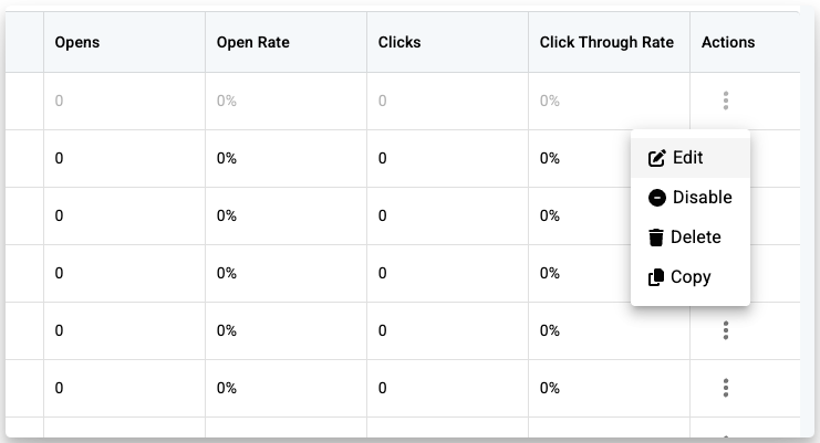 After sending, you can review how your Automated Messages are performing directly in the table. Performance metrics update automatically as recipients engage with your message.
