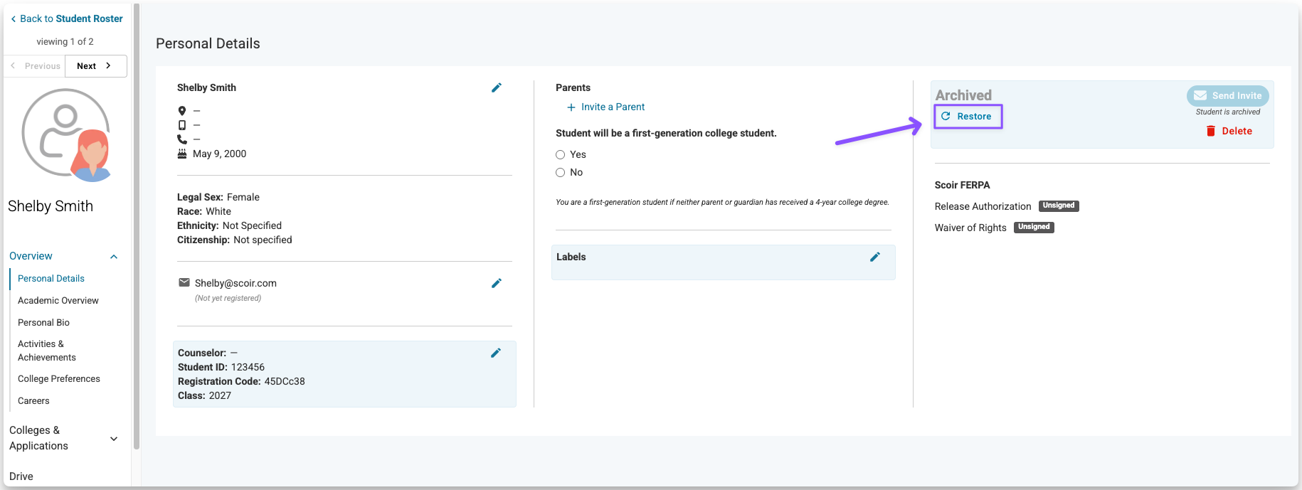 For Counselors: How to Find and Restore Archived Students