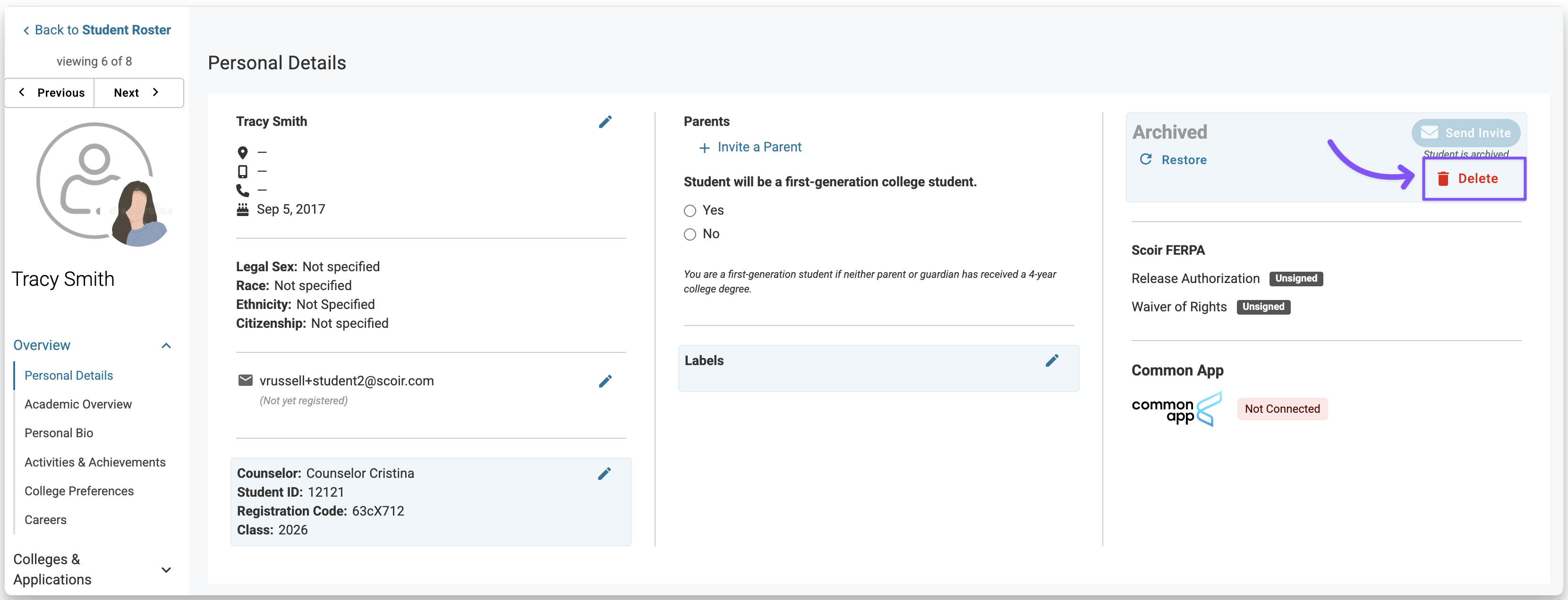 Archived students are not deleted. Their data remains part of your school's records and continues to appear in reports such as scattergrams and alumni insights.