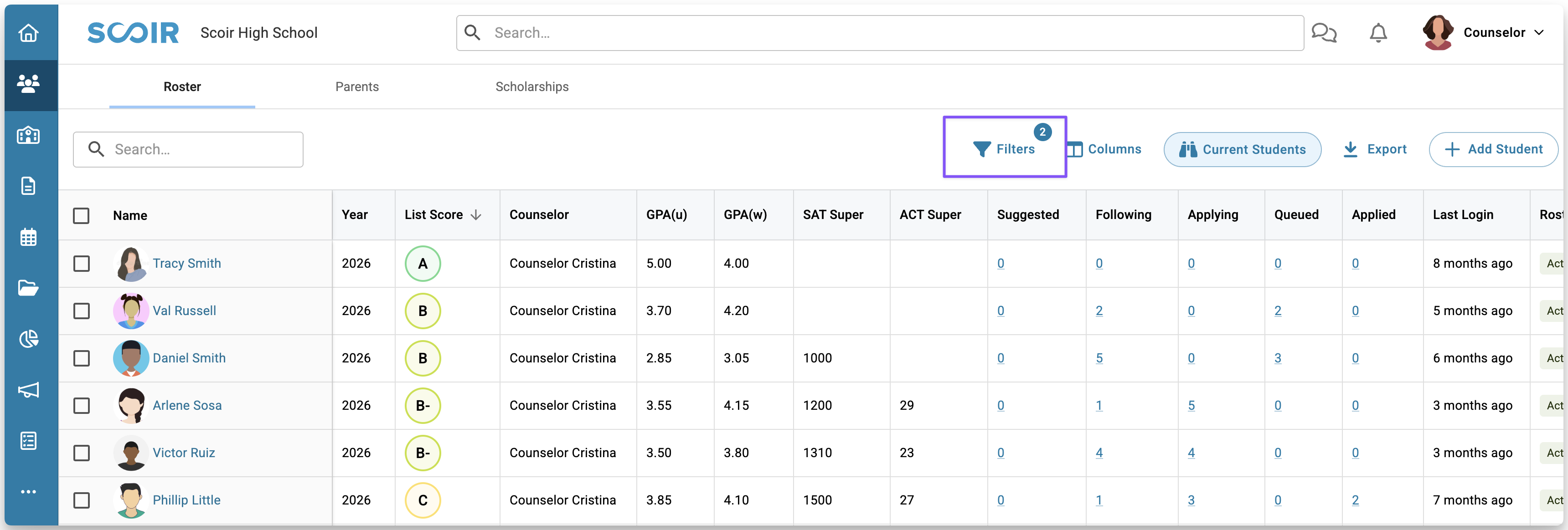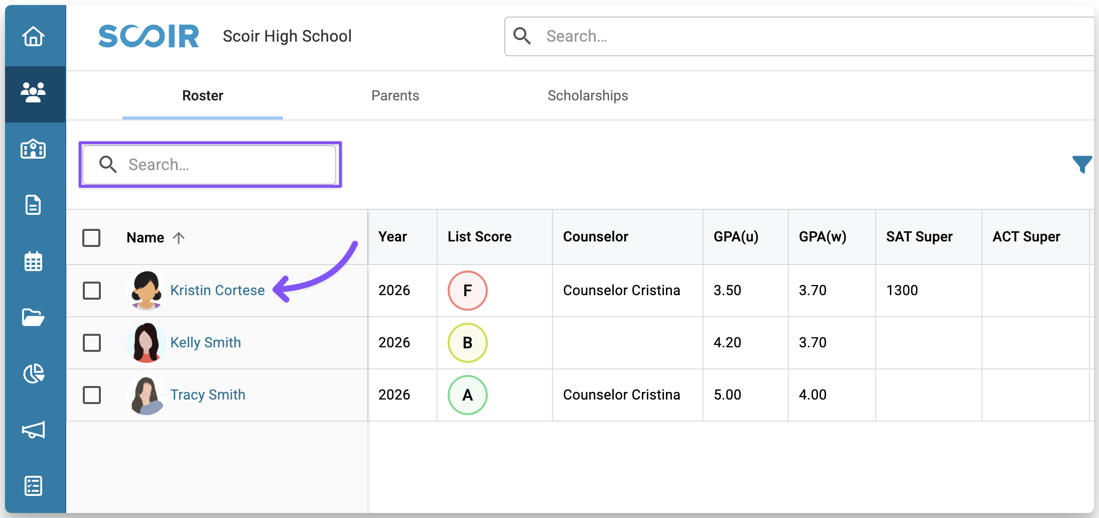 For Counselors: Student roster overview