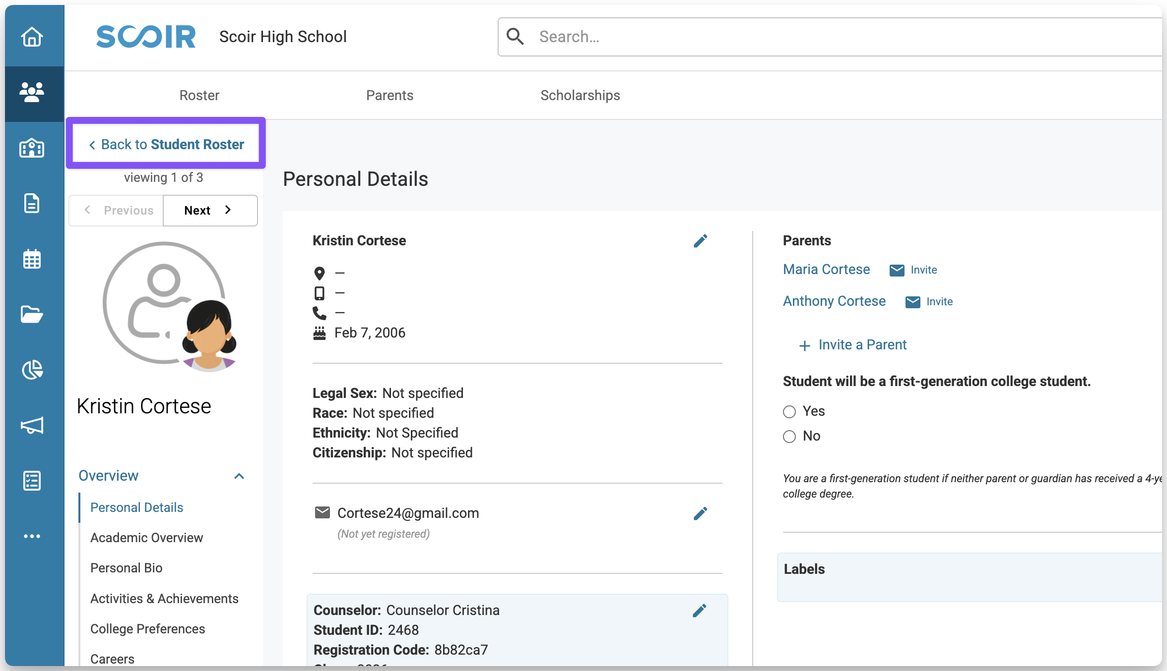 For Counselors: Using the Parent Roster