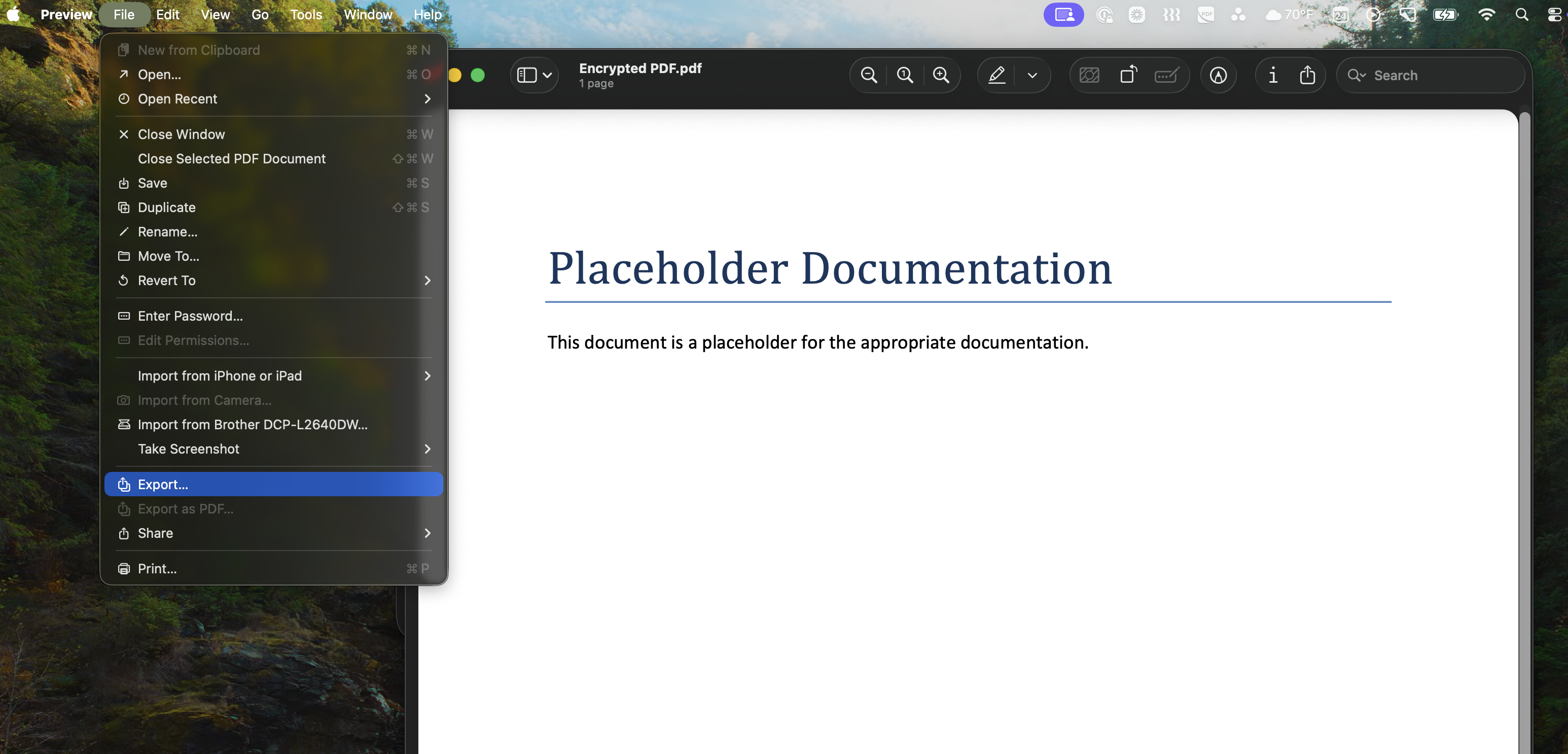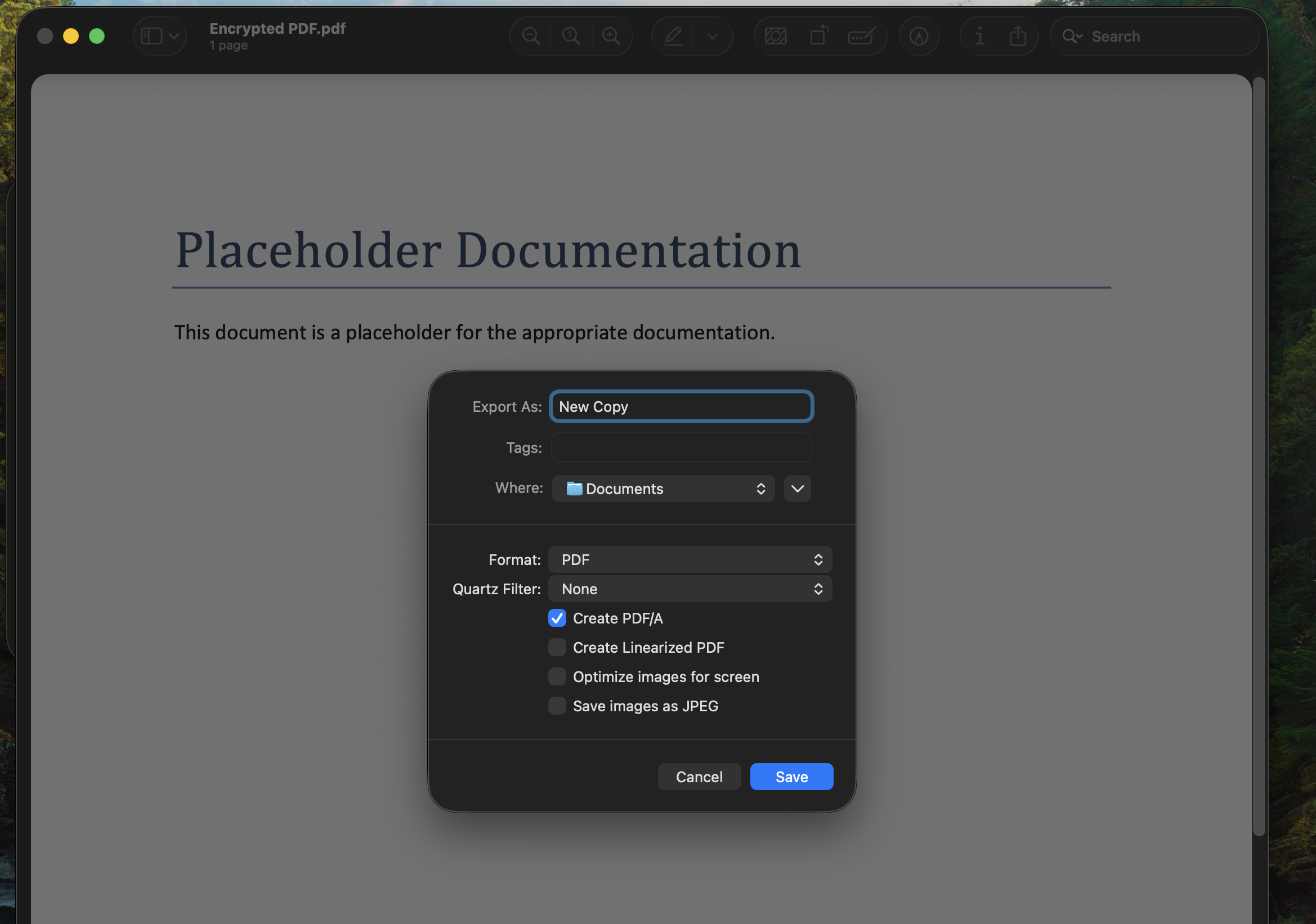If the file came from another system or source, it may have been encrypted automatically. In that case, you can try to request a non-encrypted copy from whoever provided the document. - Use “Print to PDF” (or a similar option) to create a new digital copy