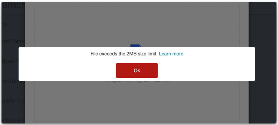 Common App can’t accept PDF files that are larger than 2MB. Since Scoir sends documents into their system for schools using the integration, we must follow that same limit.