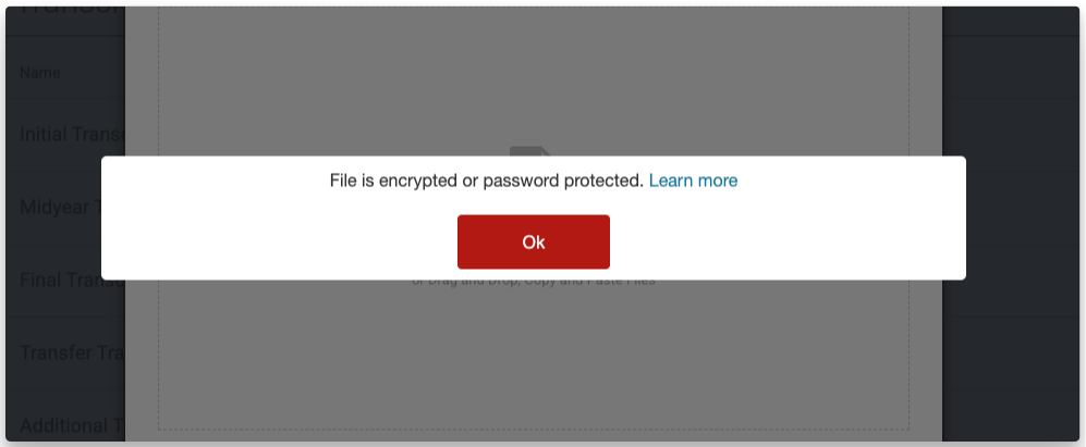 In many cases, PDFs downloaded from services like Parchment or other transcript providers are automatically encrypted, which can cause this error.