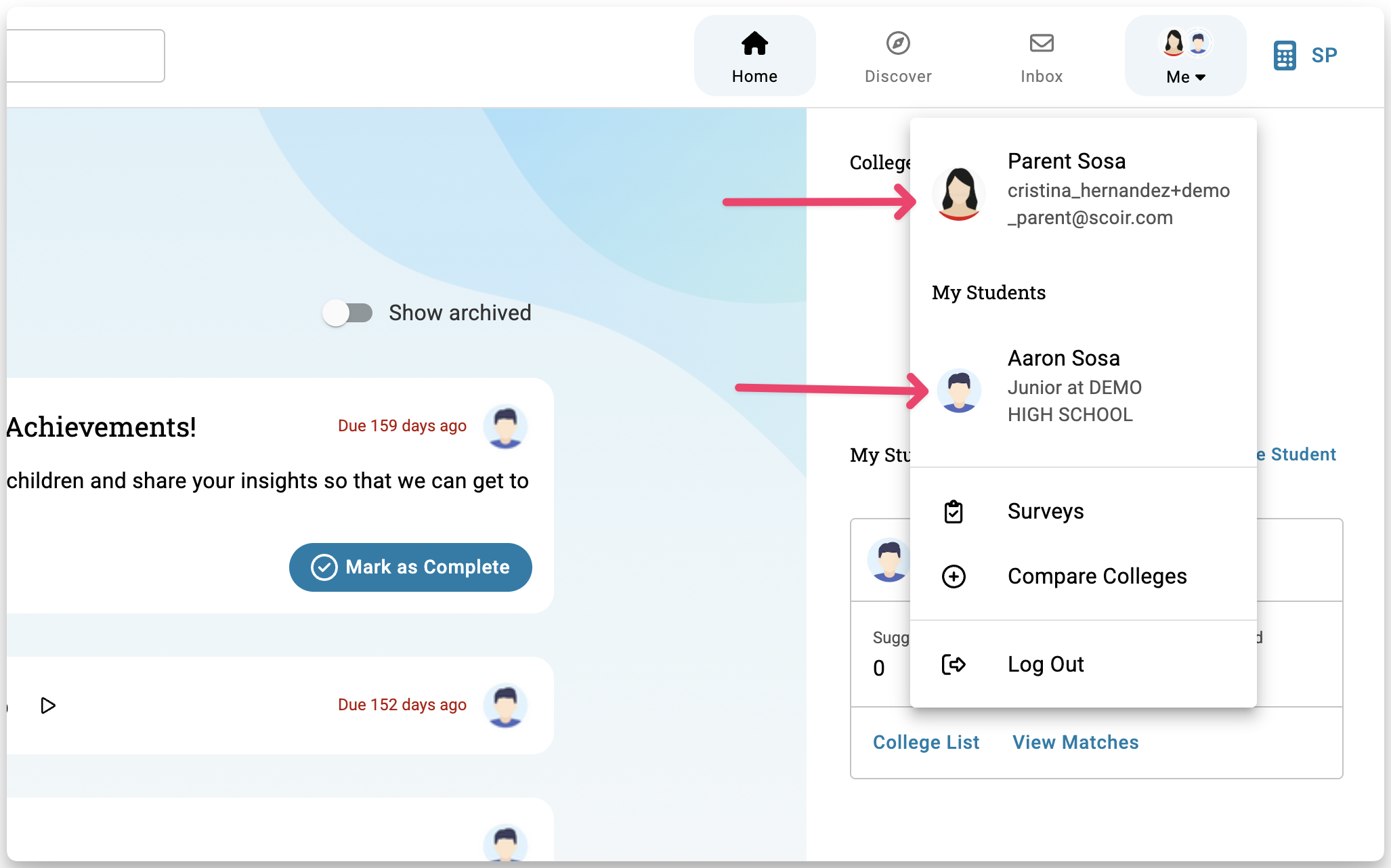 To view your student's saved College Preferences, follow these steps.