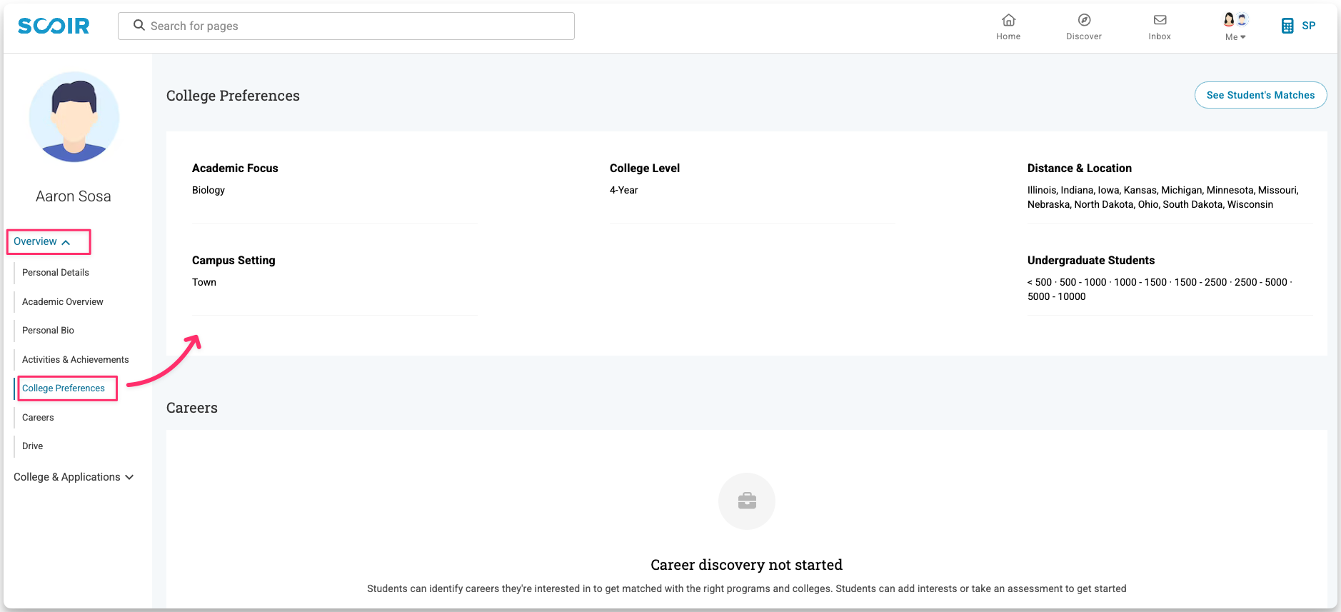 You can also view your student’s College Preferences from their profile to keep their interests in mind as you explore.
